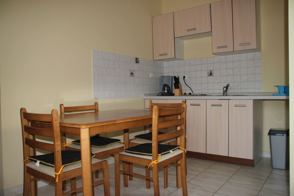 In der Wohnung Nr. 4 gibt es eine größere Küche, die sich ggf. für das gemeinsame Zubereiten von Mahlzeiten anbietet. Dort, sowie auf der Terrasse, sind auch mehrere Flächen, wo man gemeinsam essen oder Gruppenveranstaltungen durchführen kann.