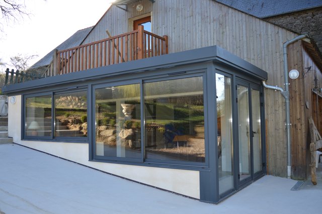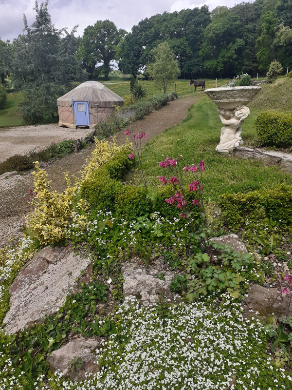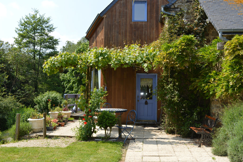 Dem Herrenhaus aus dem 16. Jahrhundert und dem „Maison Bleue“ (…nur für erwachsene Gäste…) – einem Holzhaus neueren Datums, das links neben dem Herrenhaus steht.