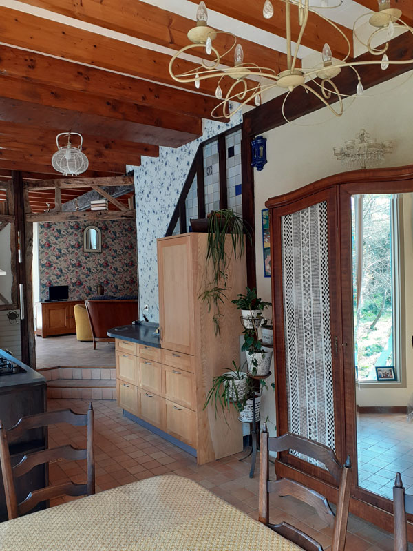 Die Mahlzeiten können im alten Speiseraum des Herrenhauses mit seinen 2 großen Kaminen und den alten Terrakottafliesen eingenommen werden. Darüber hinaus steht auch noch ein großer Aufenthaltsraum mit Veranda zur Verfügung mit Blick auf die Landschaft.